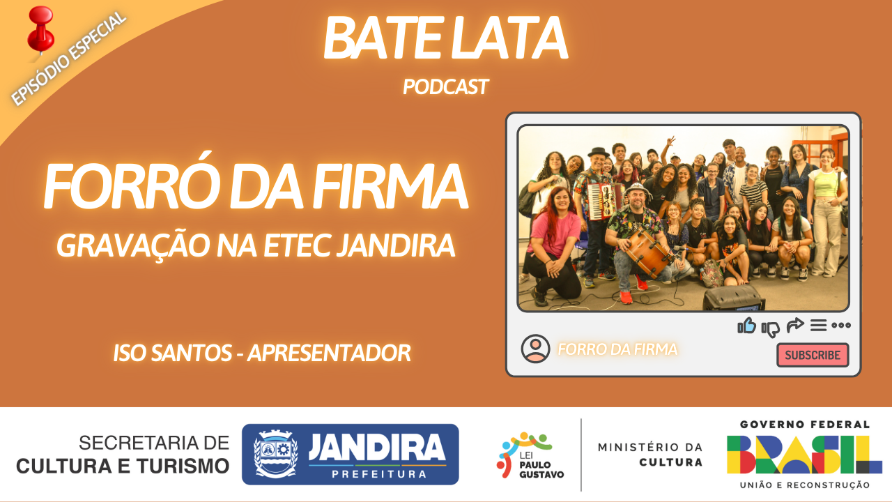 Bate Lata Podcast, conhecido por seus bate-papos descontraídos e educativos com músicos e instrumentistas, lançou um episódio especial gravado na ETEC Braz Paschoalin – ETEC Jandira, com participação das turmas de Técnico em Administração – 1º B e 1º C. Este episódio trouxe como convidados especiais a banda Forró da Firma, que animou a plateia com sua energia contagiante e apresentou suas músicas autorais no estilo forró.