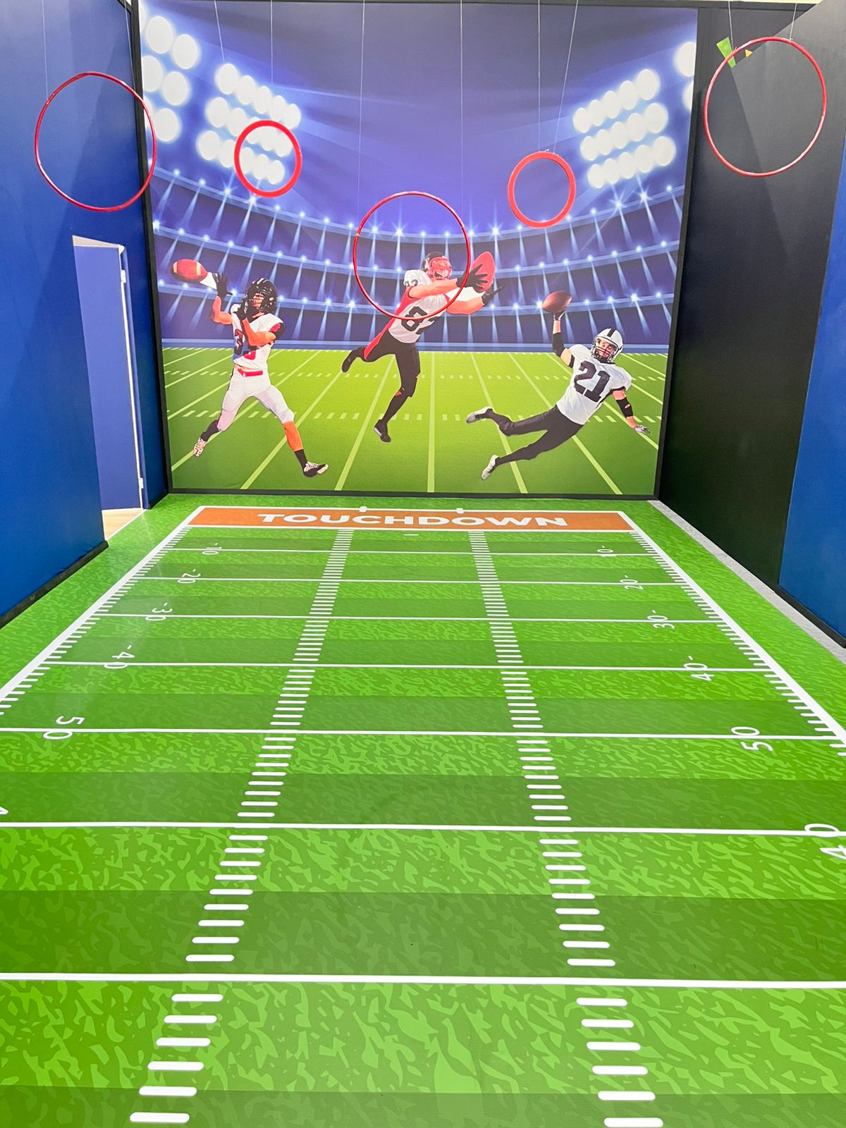 O local terá monitores que irão ajudar o público na hora de realizar o circuito de atividades. Será possível aprender a marcar um touchdown no espaço de arremessos e treinar os dribles que os jogadores profissionais realizam durante as partidas. Também terá treinamento funcional e de velocidade com mini paraquedas, e blocos de espuma para treinamento de salto.
