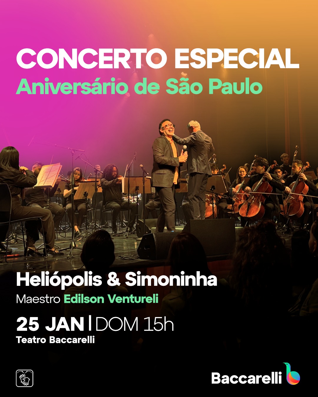Teatro Baccarelli celebra 472 anos de São Paulo com concerto especial da Orquestra Sinfônica Heliópolis & Simoninha