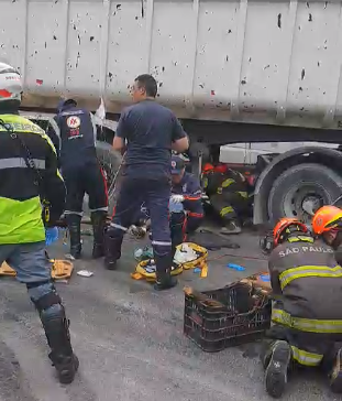 Acidente em Jandira, homem fica preso nas rodas de um caminhão