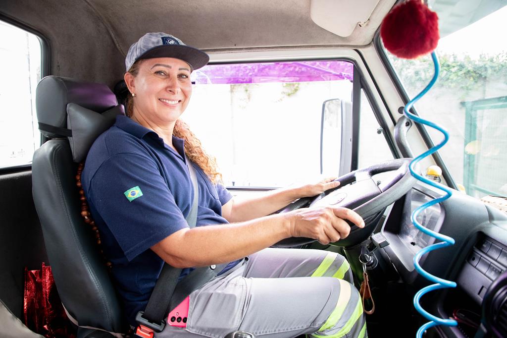 Eliane dirige caminhões de médio porte há seis anos, transportando as cestas do projeto Horta da Gente, da Secretaria de Assistência e Desenvolvimento Social (Sads), para famílias atendidas em Barueri. Ao longo da carreira, já transportou tratores e conduziu uma equipe de mulheres responsável pela manutenção de áreas verdes.